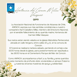ANFACH expresa condolencias a Karil Caballero por el fallecimiento de su madre 🕊️ 2 Ene, 2026 | Comunicado, Noticias aduaneras, Noticias gremiales